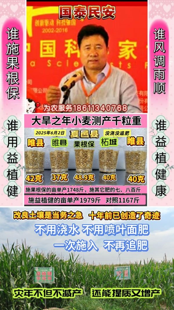大田专用:抗逆性增强,小麦、玉米亩产提高20%-40%。