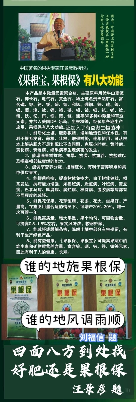 20世纪90年代,我国农业工业化进程加速,化肥农药滥用导致土壤板结、酸化、重茬病频发,“田里没了蚯蚓,春天少了蜜蜂”成为普遍现象。刘福信看在眼里、急在心里:“不能让子孙后代守着‘生病’的土地!”他带领团队历经13年攻关,于2010年成功研发**“果根保”多元素微生物菌剂**,以30余种微量元素与复合菌群,为土壤“对症下药”。