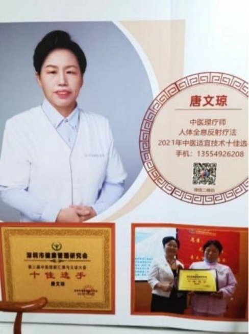 在唐文琼的带领下,努力将中医养生智慧与现代科技力量编织成一幅宏大而又细腻的生命守护图景。她也由此获得了国际政商新春联谊会颁发的中医传承人称号、中医药传承创新分会特聘为“中国国际科技促进会中医药传承创新分会特约研究员”、深圳市健康管理研究会第三届中医技能汇演与义诊大会十佳选手、《当代科学家》杂志封面人物,其发明创造的唐氏筋膜全息疗法也被中关村健康服务产促进会评定为健康优势技术(产品),并被大健康产业高质量发展大会详细报道等。