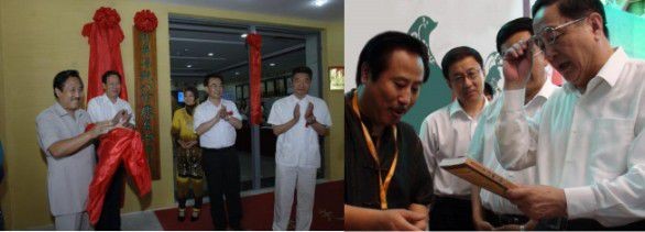 左图:2008年奥运会期间,在北京市政府和奥体中心关怀下,建立了国奥汤瓶八诊康复理疗中心。杨华祥教授陪同时任全国人大民族事务委员会主任马启智,奥体中心主任马敬选,汤瓶八诊机构名誉主席何起沄出席揭牌仪式。