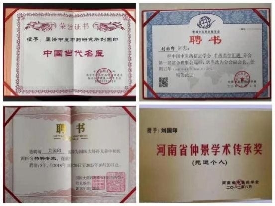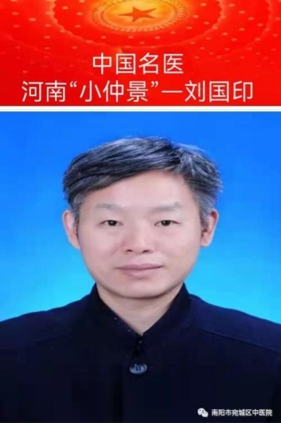 第七代刘国印,系刘鑫石四子,博览群书,集诸家之长,在南阳医圣街行医,诊治内科杂病,尤擅瘕聚癌瘤,人称“小仲景”。2014, 2017 连续两届当选区人大常务委员会委员,连年为区、市中医药事业发展提交议案建议,被相关部门采纳落实。2020 年当选为“中国好医生”和“中国当代名医”;传2017 年当选国家级学会——中国中医药信息研究会中西医汇通分会副会长;2012 年荣获“河南省仲景学术承奖(先进人)”;2016 年当选中华基层卫生联合会南阳分会副会长;2013 年荣获中国科技创新发展促进会传统医学分会授予“中医肿瘤专家”;2011 年当选中华中医药学会肿瘤分会委员,2012 年荣获该会“全国中医药肿瘤防治先进个人”称号;2012 年 7 月被聘为南阳理工学院中临床实践指导老师;2016 年被南阳医学高等专科学校聘任为临床实践指导老师;荣获中华医药名人协会“中华特技名医” 称号;先后被评为宛城区“劳动模范”、“宛城区名中医”、 第三批“南阳市名中医”。