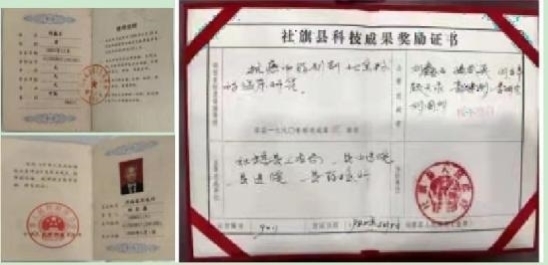 图为社旗县科技卫生部门于1996 年11 月出具的中医世家“抗癌消瘤粉”证明等