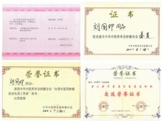 2012 年 7 月荣获中华中医药学会肿瘤分会“全国中医药肿瘤防治先进工作者”称号;