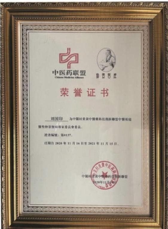 八代中医世家,传承是基础,初心是根本,创新是关键。刘积庆堂第七代掌门人刘国印,锐意进取,奋发图强,注重用现代科学解读中医药学原理,推动传统中医药和现代科学相结合、相促进,将祖传经验加以整理完善,创立“刘积庆堂培元固本理论体系”,立一家之言,言一家之说,形成了具有刘氏特色的学术流派。先后研发出“肠德康胶囊”、“乙肝康胶囊”、“银屑归元胶囊”、“通心舒胶囊”“消炎抗瘤粉”、“络泉宝冲剂”等效果良好的中成药。在培元固本理论基础上研制出“刘氏培元固本丸”、“活肺通窍丸”等中药新品。抗肿瘤系列中药有三项获国家发明专利;并先后当选为中华中医药学会肿瘤专业委员会委员、中国中医药信息研究会中西医汇通分会副会长。