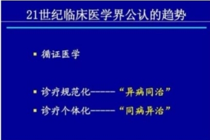 辩证论治是中医的精髓,是指导临床治疗疾病的基本法则, “异病同治” 就是在此原则指导下产生的。 “异病同治”作为中医最基本的治疗原则之一,在临床实践中,对于提高 临床疗效具有十分重要的指导意义。肝炎、风热感冒、高血压、头痛 晕弦、耳鸣、目赤肿痛、疮等病虽表现各不同,但其总病机不外都归内 热所导致,这时可按“异病同治”原则治疗,会取得良好的效果。(视图) 著名医典《金匮要略》中异病同治的条文占据 70 多条,涉及的方剂达 30 余首。(视图) 祖国医学博大精深,同病异治和异病同治,充分体现了中医的哲学思想, 即现象和本的区别:同样的现象,本质不一定相同,同样的本质,表现形式 也不尽相同,所有就要透过现象看本质,这样才能达到同样的异治和异病 同治的良好疗效。(视图)