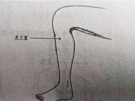 足三里穴位于膝关节髌骨下,髌骨韧带外侧凹陷中,即外膝眼直下四横 指,然后再往外一横指的地方。
