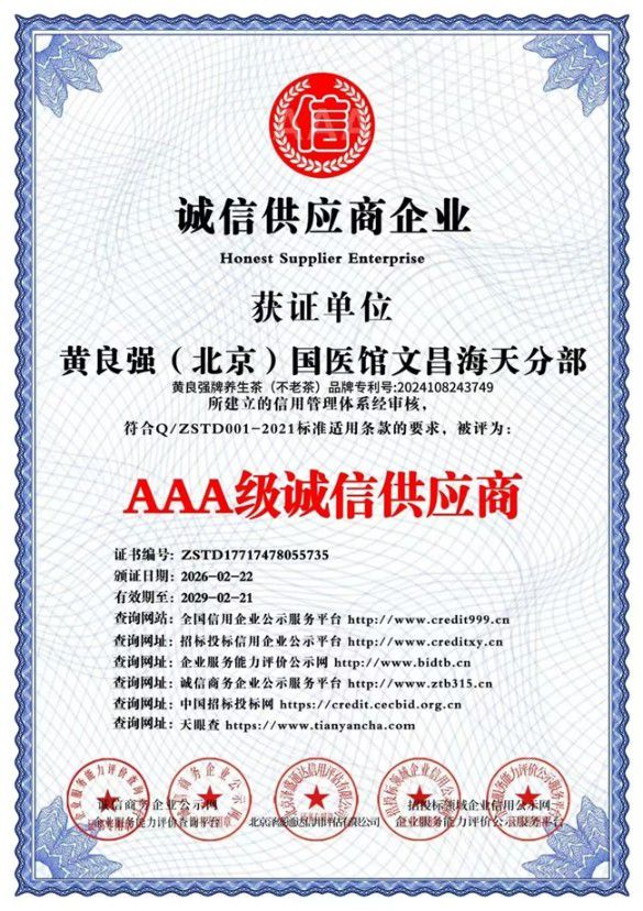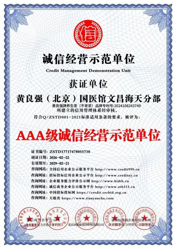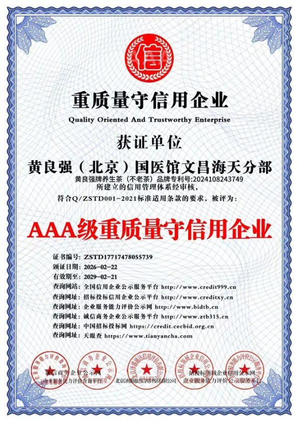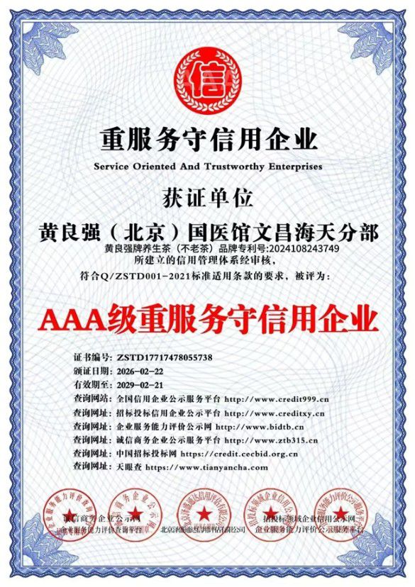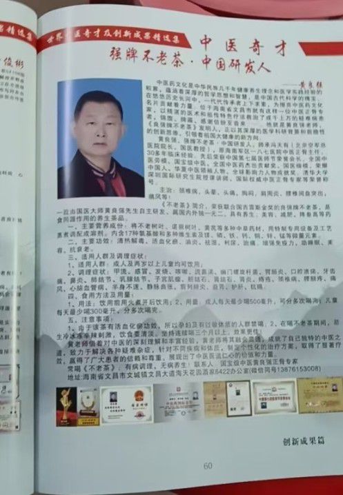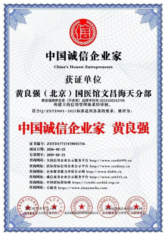 北京国医馆海南海天分馆黄良强国家级中医大师,中医药养生,黄良强牌养生茶《不老茶》吉雷斯世界纪录金奖。天下长寿美容茶纯鲜,活性,无毒。〈组成〉不老树叶,诺丽叶,葛根,山楂,杜仲,红景天,黄芪,等。