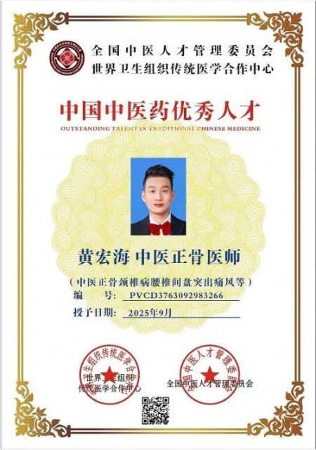 黄良强国宝级中医正骨专家(原军医)主治:颈椎病,头晕,头疼,肩周炎,手麻木,胸闷,腰椎间盘突出,坐骨神经疼,痛风。等!