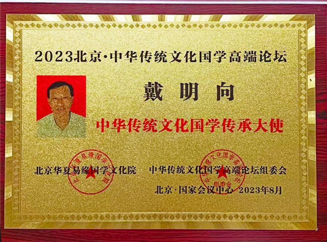 随着在易学领域的持续深耕与奉献,戴明向的坚守逐渐被更多人看见,也收获了来自各界的认可。一份份荣誉,像是一座座见证的里程碑,既照亮他走过的路,也提醒着他肩头日益沉重的文化使命——成为新时代非遗的传播者,让易学智慧润泽更多心灵。