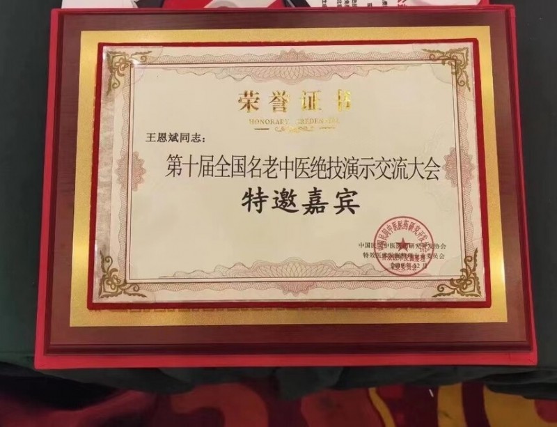 2019荣获第十届全国名老中医绝技演示交流大会特邀嘉宾。2019被收入中医祖庭仲景智库成员,并获得中国针灸协会颁发的传承证书。