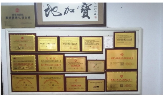 如今,齐齐哈尔市地加宝生物科技有限公司在董事长张孝宝的带领下,已成为行业代表企业。地加宝系列生物菌肥凭借着突出的生态优势与优越的产品品质,先后获得“ 中国驰名品牌、国际知名品牌、中国3.15诚信品牌、全国消费者放心满意品牌、中国绿色原生态健康产品等殊荣。得到了业界的一致认可与高度赞誉。